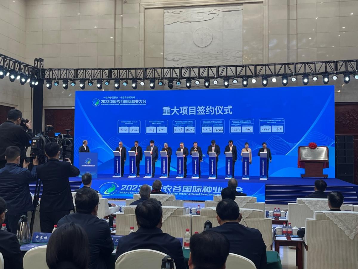 开幕式上,神农种业实验室中试和成果转化基地(鹤壁)建设协议、国家生物育种产业创新中心与国内顶尖植物育种机构番茄育种研发合作协议、国家生物育种产业创新中心与国内顶尖植物育种机构蔬菜全产业链推广合作协议、国家生物育种产业创新中心与国内顶尖植物育种机构特色蔬菜育种合作协议、国家生物育种产业创新中心智慧育种创新平台建设合作协议、国家生物育种产业创新中心AI生物育种大脑合作协议、国家生物育种产业创新中心小麦重大成果转化协议、推进河南省食用菌种业发展合作协议等项目举行现场签约。